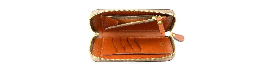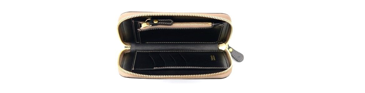 拉鍊為日本大廠YKK最高等級EXCELLA拉鍊,拉鍊齒表面全部研磨拋光而成,炫目的外表更添奢華質感。相較於一般拉鍊,耀眼的金銅色拉鍊齒更為滑順好拉!與本店的Quindici弧形拉鍊式長夾想比,寬度及長度皆較小些,尺寸大小適合收入牛仔褲的後口袋!