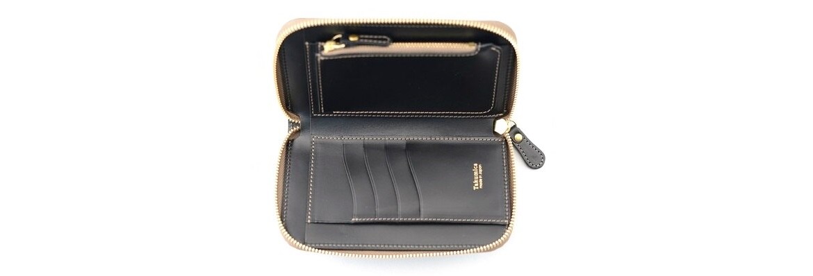 拉鍊黏貼於皮夾本體時,仔細地將拉鍊的彎曲部份工整平順的貼合,不僅是Takumics工房所擅長的,也是提升外觀美感很重要的製作步驟!