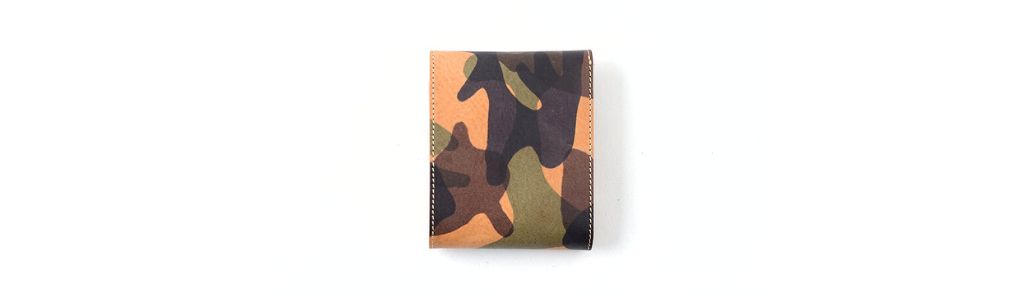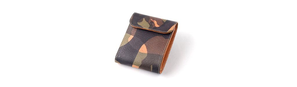採用義大利植鞣革協會成員所生產的植鞣革,富含油脂而質地柔軟,迷彩紋樣引人注目!內層也採用義大利製植鞣皮革,洋溢著復古感。隨著使用時間,享受皮革的經年變化(エイジング),培育出個人風格的隨身革小物。顆紋紋理中凸起部份的顏色較深,視覺上創造出富有立體感的色調。