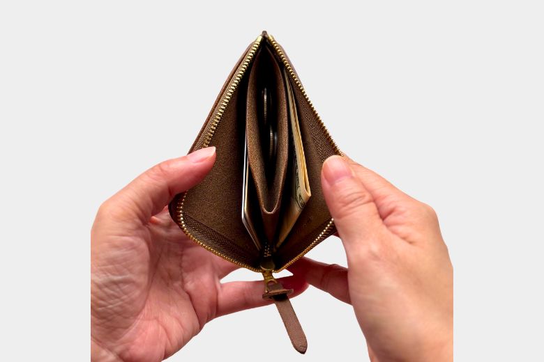 弧形淺口設計,零錢不僅好辨識,也便利收取。拉上拉鍊,零錢依然不會外漏呢。左右兩側各可收納卡片及對折後的紙鈔,收納井然有序,各有其所。