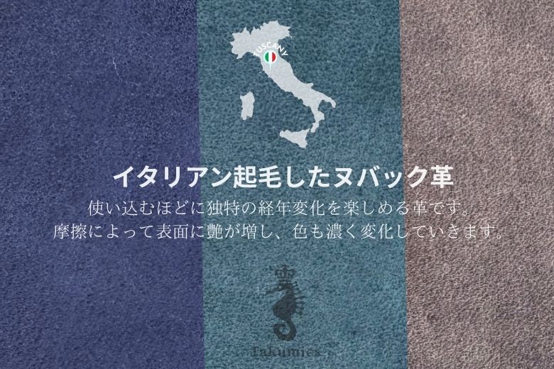 雖然有著線性紋理和油潤感,卻讓人能感受沉穩的啞光質感。隨著使用時間越長,顏色會越發雅緻而深沉,並呈現出拋光皮革獨有的光澤感。讓人盡享皮革隨著歲月變遷所帶來的使用變化。此外,鞣革工房亦獲得Leather Working Group (LWG)黃金等級的永續環保認證。