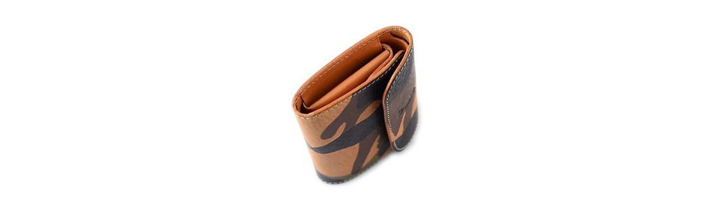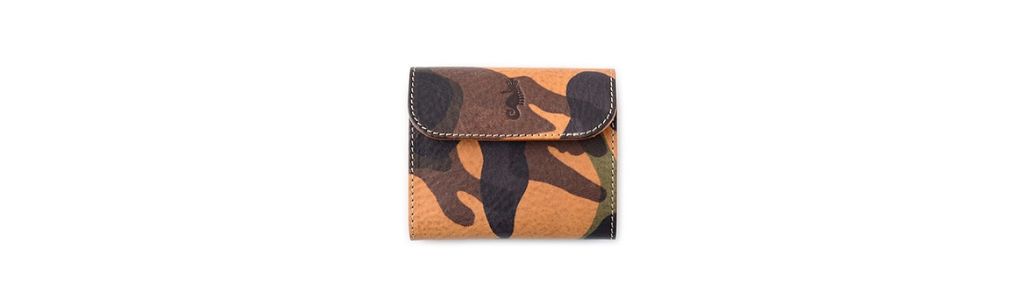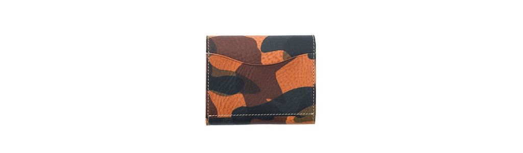 採用義大利植鞣革協會成員所生產的植鞣革,富含油脂而質地柔軟,迷彩紋樣引人注目!內層也採用義大利製植鞣皮革,洋溢著復古感。隨著使用時間,享受皮革的經年變化(エイジング),培育出個人風格的隨身革小物。顆紋紋理中凸起部份的顏色較深,視覺上創造出富有立體感的色調。
