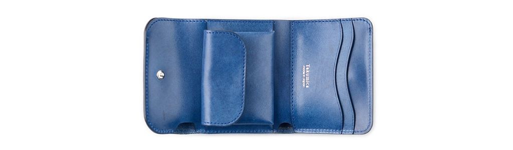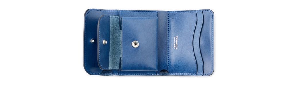 內外使用的皮革皆為日本姬路產最高級別的藍染革(Indigo Leather),以對環境友善的鞣革方法製作而成。外層為深藍色的皮革,在日光照射下,則呈現具有透明感的群青色(帶紫色的深藍色)。請務必品味藍染革在日光下的顏色變化!內部則使用淺色調的藍染革,內外呈現出Two Tone的漸層搭配。