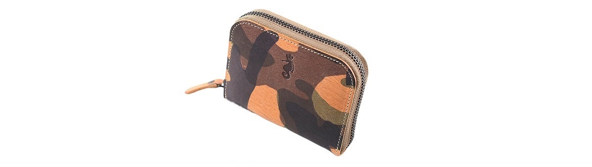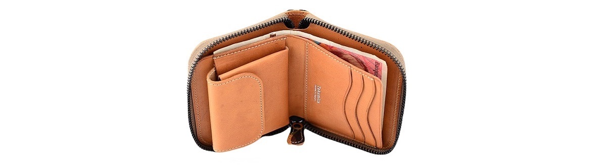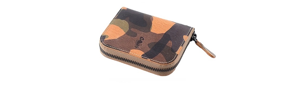 特意選用日本大廠YKK所生產的霧黑色的金屬拉鍊,搭配外層迷彩紋樣的義大利植鞣革,以營造越野風格。拉鍊黏貼於皮夾本體時,仔細地將拉鍊的彎曲部份工整平順的貼合,不僅是Takumics(タクミクス)工房所擅長的,也是提升外觀美感很重要的製作步驟 !